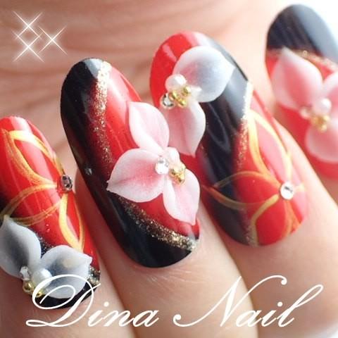 ネイルチップ 和風金花アート3dフラワー成人式 サイズオーダー ハンドメイド デザインつけ爪 ラウンド 着物 和柄 成人式 Ro116 Dinaネイル 通販 Yahoo ショッピング