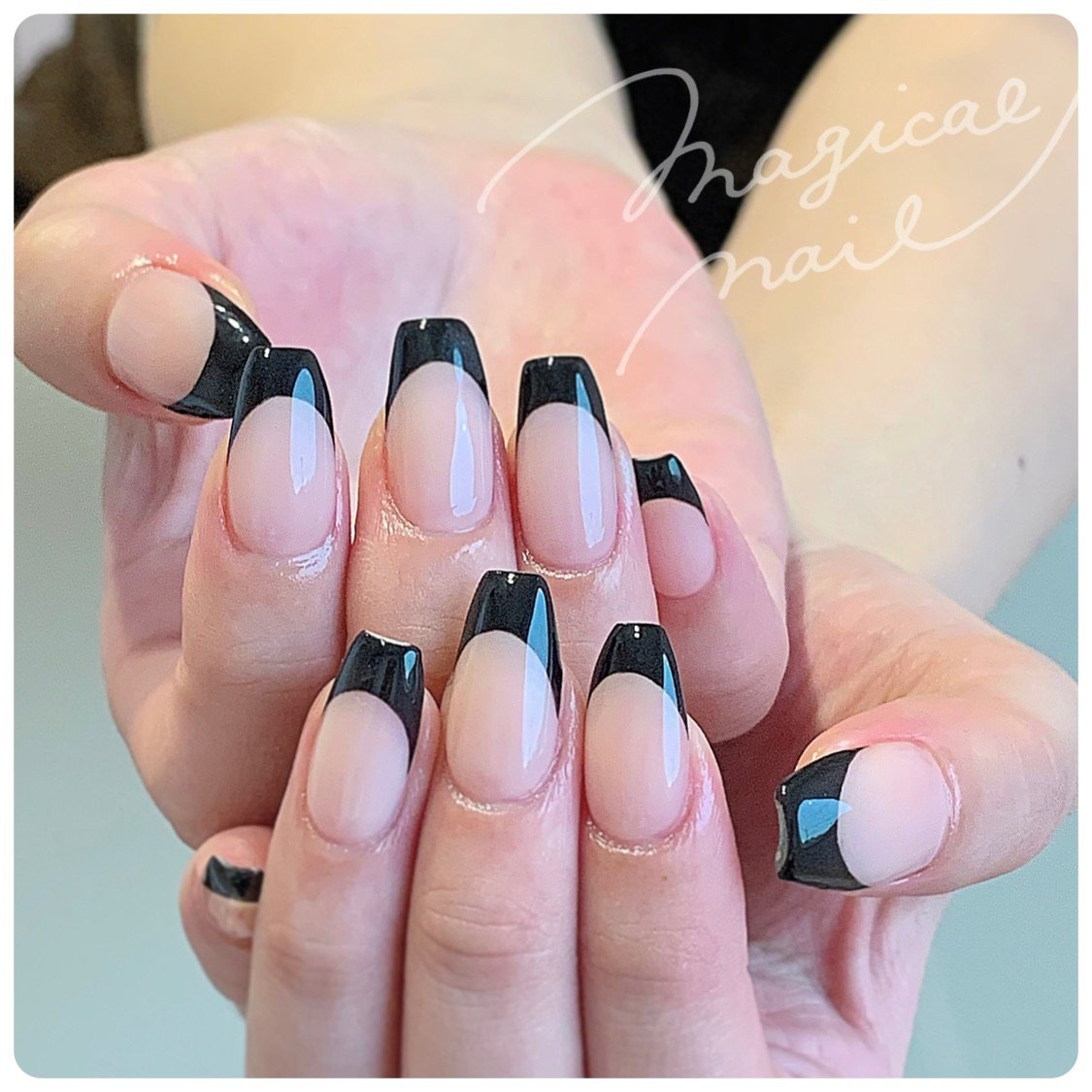 黒フレンチスクエアスタイル Dityca Nail所属 Dityca Reinaのネイルデザイン ミニモ