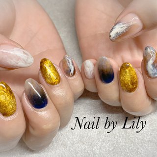 シェル ゴールド箔ネイル お仕事に差し支えない範囲の大人かわいいネイルです Mahina Nail所属 Mahina Nailのネイルデザイン ミニモ